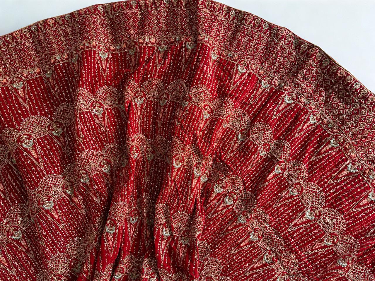Red Velvet Embroidered Lehenga Set with Dupatta
