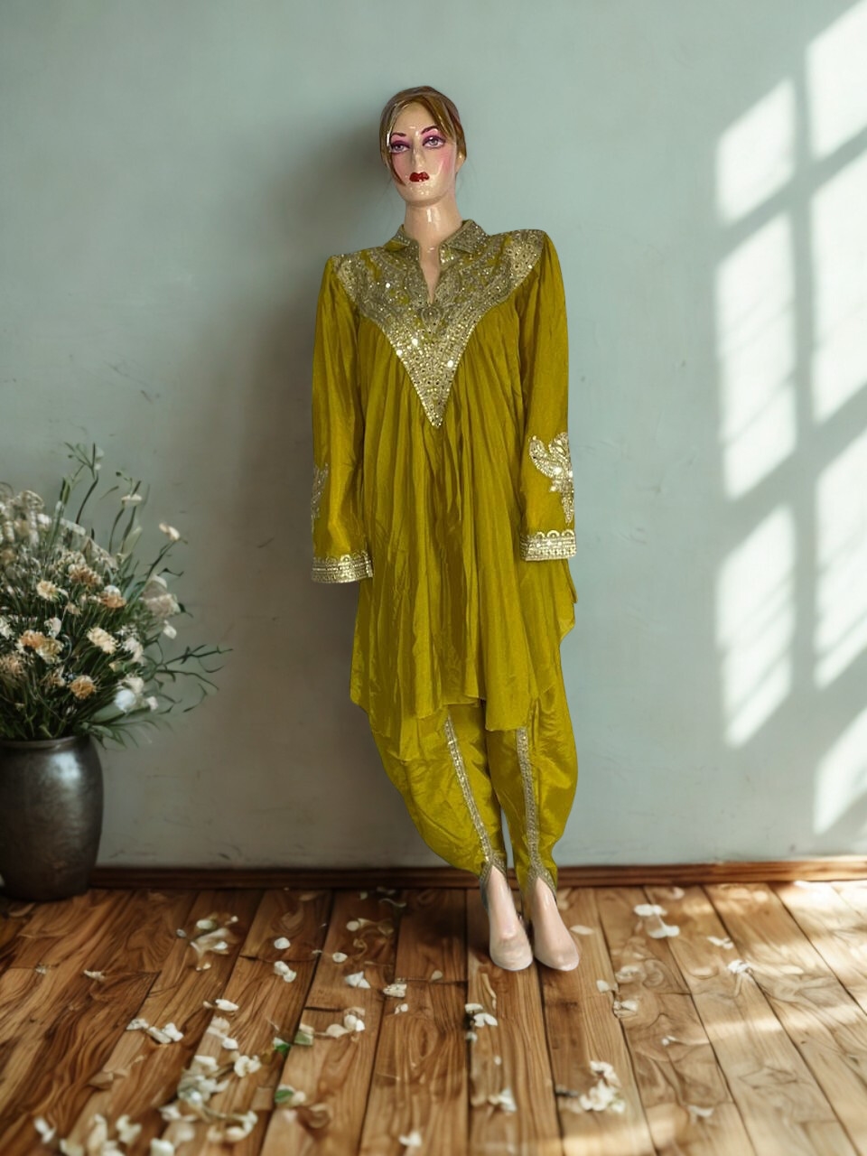 Mustard Yellow Dhoti Salwar and Short Kurti Set with Dupatta