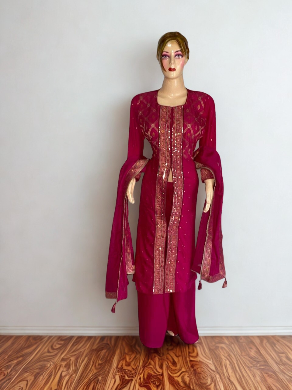 Magenta Pink Embroidered Silk Suit Set with Dupatta